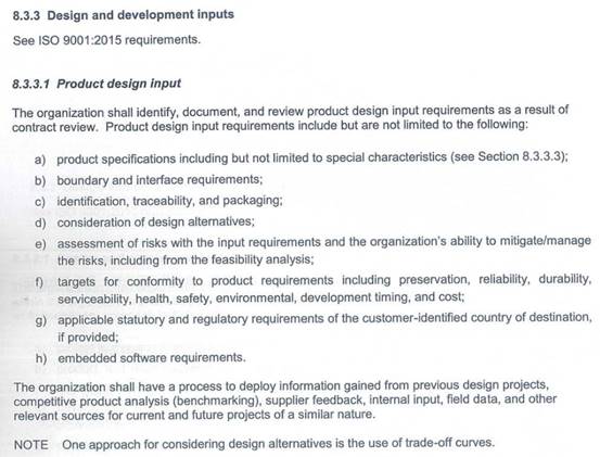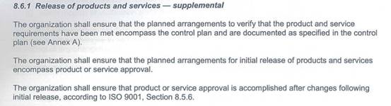 8.3.5 Design and development outputs 8.6 Release of products and services