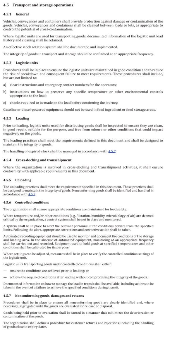 4.5 Transport and storage operations