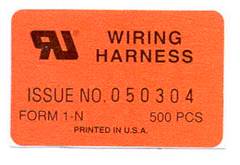 必須為UL合格的裁配線製造廠承製,且在產品的出貨外箱上必須黏貼UL 橘色 Wiring Harness Label 標籤 及相關UL要求標示 (裁配線製造廠英文公司名 及 整組線材產品料號),如下圖